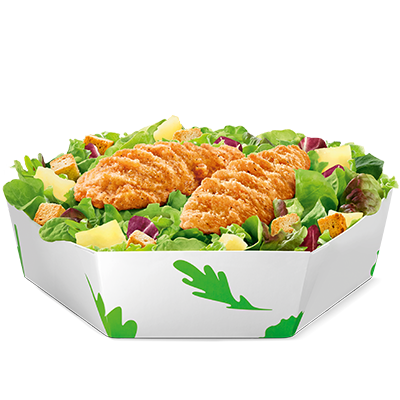 Découvrez la Salade Caesar composée de poulet chaud et croustillant, de fromage, des croûtons et d’un mélange de feuilles de salade fraîches, françaises et de saison préparée chaque jour sur place dans vos restaurants McDonald's.