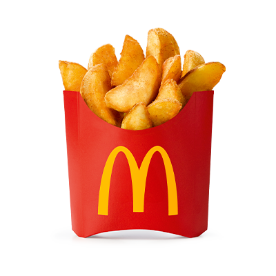 Disponibles également en moyenne portion. Quartiers de pommes de terre avec leur peau, épicés, frits.